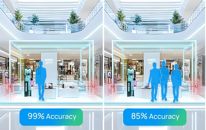 VS360 offers pinpoint precision in foot traffic counting with an accuracy of up to 99% for single person detection, and up to 85% accuracy when there is more than one person